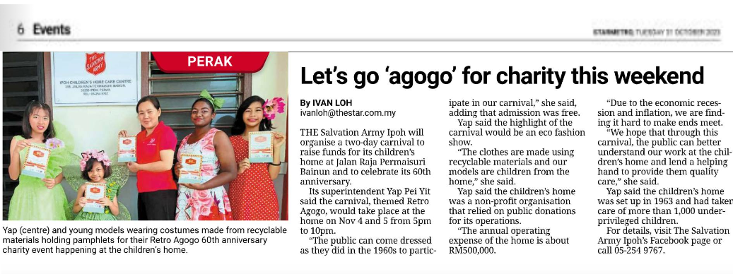 Home > Media Room > News News New Sarawak Tribune New Sarawak Tribune - The Salvation Army Nov 04 2023 Ivan Loh Let's Go Agogo for Charity this Weekend - Ipoh Children's Home Oct 31 2023 Star Metro Penang Open Day 2023 Oct 10 2023 Borneo Post Borneo Post - New Salvation Army Home Conducive for Children Sept 26 2023 See Hua News See Hua News - Launch of Kota Samarahan Complex Sept 24 2023 New Sarawak Tribune New Sarawak Tribune - Salvation Army Gets New Home Sept 24 2023 China Press China Press - Ipoh Open Day 2023 Aug 22 2023 The Star The Star - Second Life Used Goods Aug 18 2023 The Star The Star - Ipoh Open Day Promotion July 03 2022 Borneo Post New Salvation Army headquarters in Kota Samarahan expected to be complete by end of 2023 Feb 02 2023 Prev Page1 Page2 Page3 Page4 Page5 Next